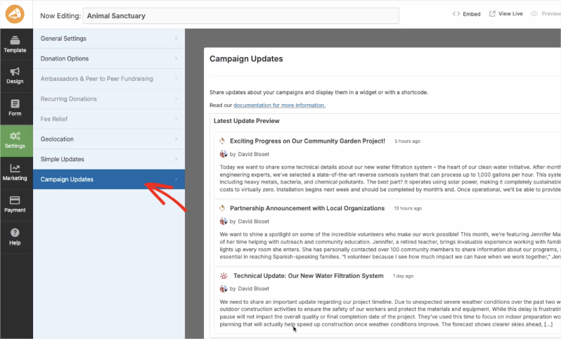 The new Campaign Updates feature is available in Charitable Pro. Simply update to the latest version to start using it. Not yet on Charitable Pro?